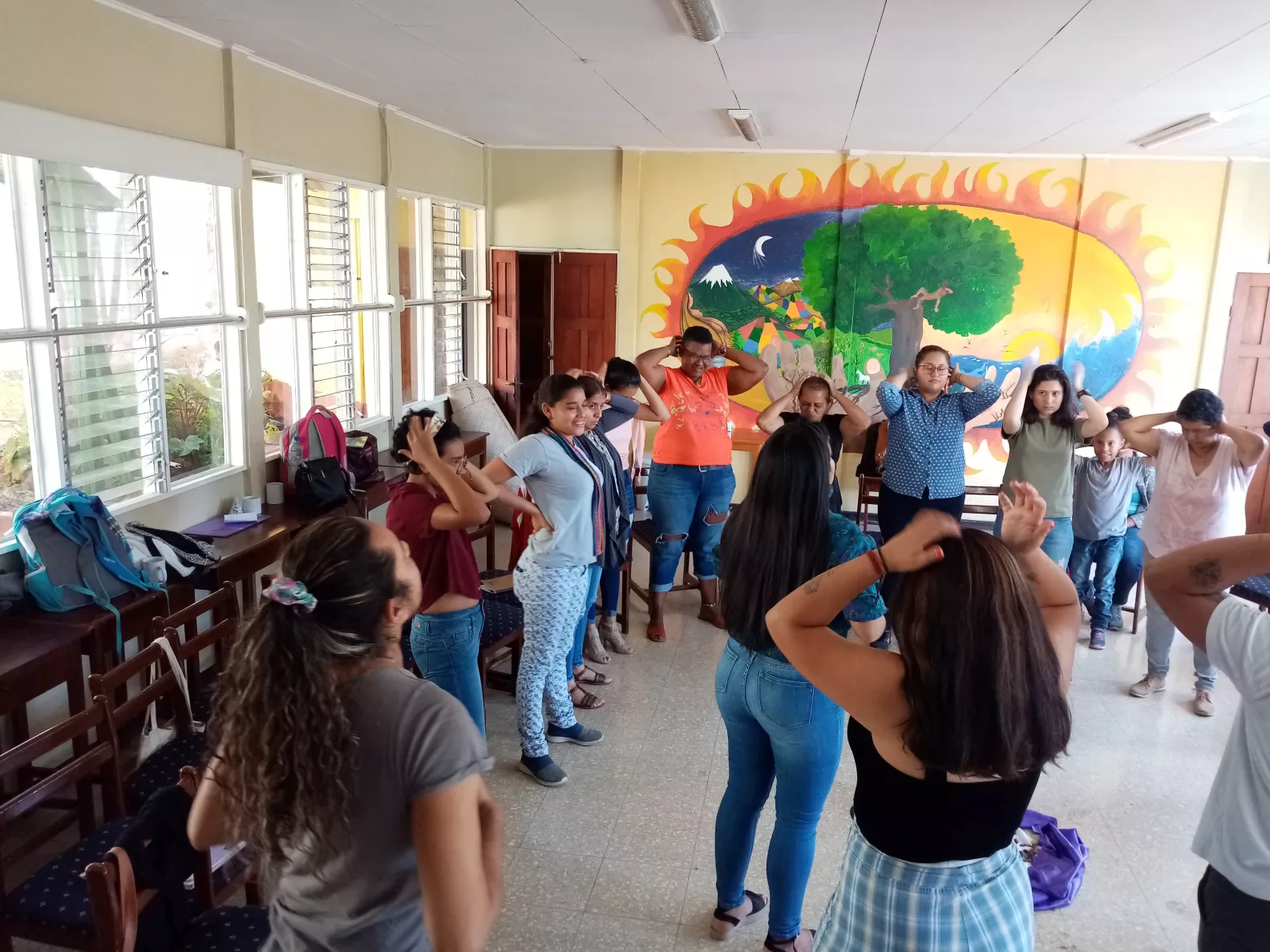 Les contenus développés jusqu’à présent se sont focalisés sur le renforcement organisationnel et psychosocial. La méthodologie consiste à travailler depuis l’expérience vécue par chaque participant, au niveau collectif et individuel. Nous nous basons sur ces savoirs, consolidés en connaissances, qui permettent ensuite d’analyser les émotions vécues lors de l’exil et de se projeter vers le futur. Nous recherchons également à toujours encrer notre travail dans une analyse du contexte et du risque, afin de générer des stratégies de protection face à la violence socio-politique vécue au Nicaragua. Nous fortifions les réseaux, le lien social, en comptant sur le fait que la possibilité de réparation et de guérison passe aussi par la multiplicité des réseaux des personnes et des communautés, ainsi que par le renforcement interne à chaque organisation qui a été victime de tentatives de fragmentation et d’affaiblissement. Nous adoptons une approche critique et réaliste, basée sur les besoins inhérents au contexte particulier des populations que nous accompagnons.